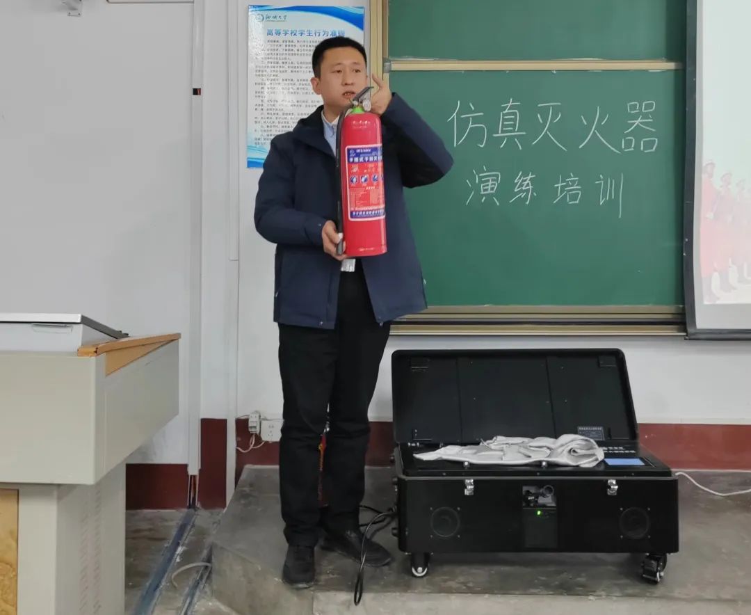 培训伊始,马国栋强调了掌握基本安全消防常识的重要性以及必要性,并指出了同学们存在轻视火灾,不具备消防意识及独立灭火能力等问题,随后,他向同学们普及了扑救初期火灾、及时逃离火灾现场等消防安全常识,深入浅出地向同学们传授了火灾隐患排查的相关知识,并列举了大量生活中的真实火灾案例,现场讲解了灭火器的功能区别,如何正确使用灭火器。在同学们掌握灭火理论基础后,马国栋利用真实的灭火器以及火焰模拟机器演示了灭火器灭火的真实过程,并组织同学们逐一进行灭火器的实操训练,亲身感受“一提、二拔、三握、四压”的操作步骤,让同学们熟练掌握灭火器的正确的操作方法。本次培训确保各班同学全员到齐,无请假现象,培训内容饱满实用,同学们认真学习,积极参与,纷纷表示对火灾有了更直观的认识,将时刻紧绷消防安全这根弦,提高自己的消防安全意识。