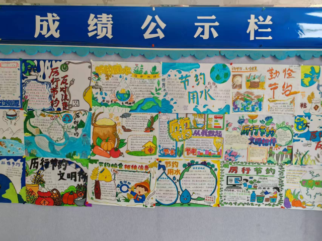此次活动呼吁学生以手抄报为载体,将节水节电、低碳生活等理念转化为可视化表达。从前期策划到创作实施,同学们积极筹备,充分发挥自己的想象力和创造力,利用课余时间查阅资料、构思版面,创作出了一幅幅主题鲜明、内容丰富、形式多样的手抄报作品。这些作品主题突出、风格各异,既有大气磅礴的宏观叙事,也有细致入微的生活场景描绘,每一笔勾勒、每一抹色彩都凝聚着同学们对节约文明的深刻感悟。其中,有的作品以“光盘行动”为主题,用生动的漫画展现粮食浪费的危害;有的围绕“绿色用电”,通过简洁的插画与数据图表,科普节能小妙招,这些手抄报作品让节约理念跃然纸上,充分展现出青年学子的创新精神与社会责任感。