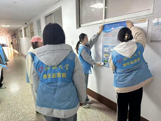 活动准备期间,志愿者们通过深入调研青年群体的关注点和兴趣点,创作了一系列主题鲜明、视觉冲击力强的西部计划宣传海报。这些海报以“情系西部,梦筑基层”为主题,海报中不仅详细介绍了西部计划的报名方式,报名时间以及具体的操作步骤,通过列举国家有关西部计划的政策和补贴,展现了国家对西部计划的重视程度。同时,志愿者们制定了详细的宣传推广计划,在考研教室和学生宿舍楼人流密集区域进行海报张贴,他们还热情地为感兴趣的同学讲述关于西部计划的一系列优待政策,从地理位置偏远但充满发展潜力的地区,到涵盖教育、医疗、农业等多领域的具体岗位分配,让同学们对服务地点与志愿内容有了更直观认知。本次宣传活动旨在号召更多青年学子参与其中,为我国西部建设注入源源不断的活力与血液。