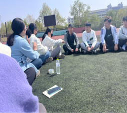 本次活动由研究生学姐带领我们进行,首先,学姐让我们在操场上围圈坐下,参加的同学们沐浴着灿烂的阳光,也被和煦的春风吹拂着。然后学姐开始和我们聊天,以便于了解我们当前的心理状况以及需要解决的心理问题。随即与我们开展了许多有趣的小游戏,拉近了同学们之间的距离,使彼此之间变得更加熟悉,热情洋溢的气氛开始升温。轮流捶捶背小游戏增加了同学们之间的身体接触,使彼此之间变得更加亲密,同学们变得不再紧张,而是逐渐融入到集体中。互相写优点小游戏通过赞美的语言来促进同学们之间的关系,使友谊快速升温,同学们看到自己众多优点心情也变得更加愉悦,自信心得到增强,压力被逐渐缓解。吹气球小游戏增加同学们之间的合作,大家共同努力接龙游戏,完成挑战,激发了同学们的斗志,调节了气氛。大树与松鼠的游戏使同学们打成一片,爽朗的笑声此起彼伏,愉悦了同学们的身心。最后听音乐环节也使同学们焦虑的情绪逐渐被释放,缓解了同学们的压力。