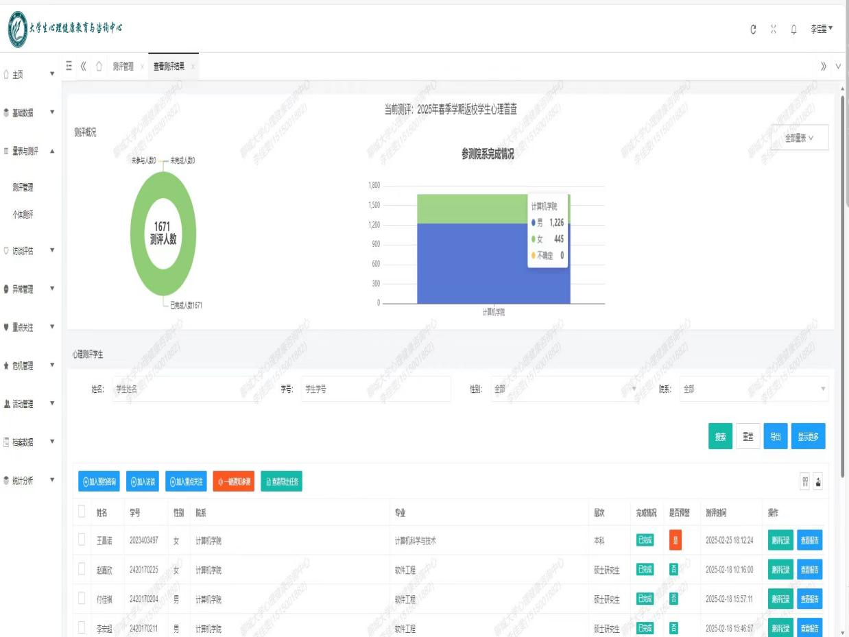 为全面了解学院全体学生心理健康状况,及时发现和解决同学们潜在的心理问题,营造积极健康的校园心理氛围,我院心理部于2025年2月18日成功开展了大学生心理普测活动。