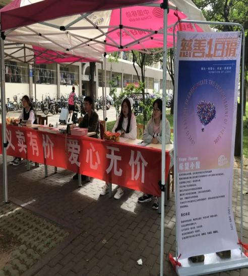 为了增强同学们参加社会志愿公益的热情,弘扬热心帮助他人的风尚,给希望小屋儿童提供物质支持和精神关怀,5月23日,计算机学院天涯寻亲社团和勤工助学部于学苑四公寓东侧举办了“慈心一日捐”爱心义卖活动。
