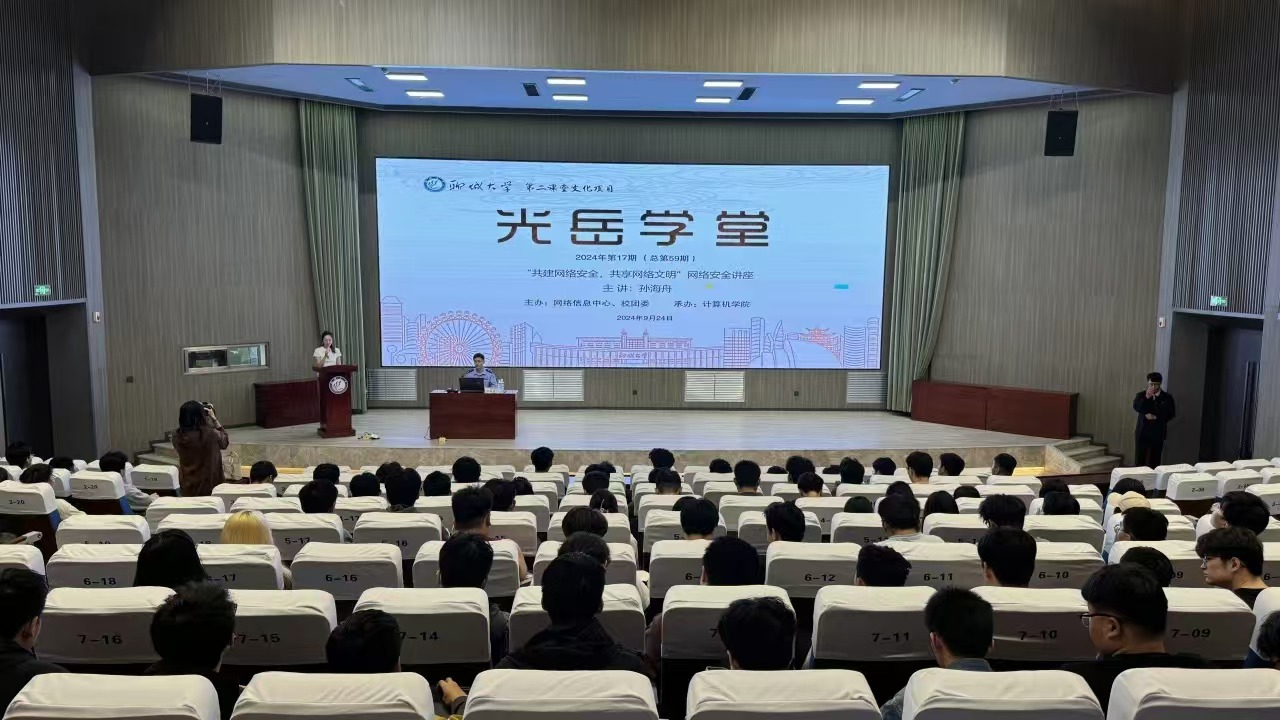 为进一步推动金融安全教育工作,增强学生的网络安全警惕性,9月24日,由网络信息中心、校团委主办,计算机学院团委承办的第59期光岳学堂——“共建网络安全,共享网络文明”专题讲座于东校区实训楼一楼报告厅举办。本期讲座特邀聊城市公安局网络安全保卫支队四级警长孙海舟担任主讲人,计算机学院辅导员李佳雯主持,各学院学生代表参加活动。孙海舟指出,要树立正确的金融安全观念,预见风险,防患未然,并叮嘱同学们在日常生活中要时刻保持警惕,做到规范、安全、文明上网。本次讲座的顺利举办,不仅增强了学生们的金融安全意识和防范能力,也为学校加强网络安全宣传教育工作提供了支持,为创建安全、健康的网络环境奠定了坚实的基础。