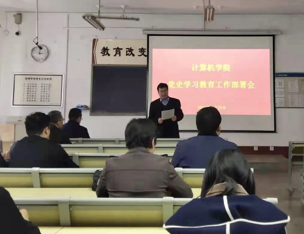 3月25日下午3:00,计算机学院于在西校区10#c420召开党史学习教育工作部署会,深入学习贯彻习近平总书记在党史学习教育动员大会上的重要讲话精神和学校党史学习教育动员大会精神,落实学校党史学习教育实施方案。计算机学院党总支书记康殿峰做动员部署讲话,全体党员参与会议。