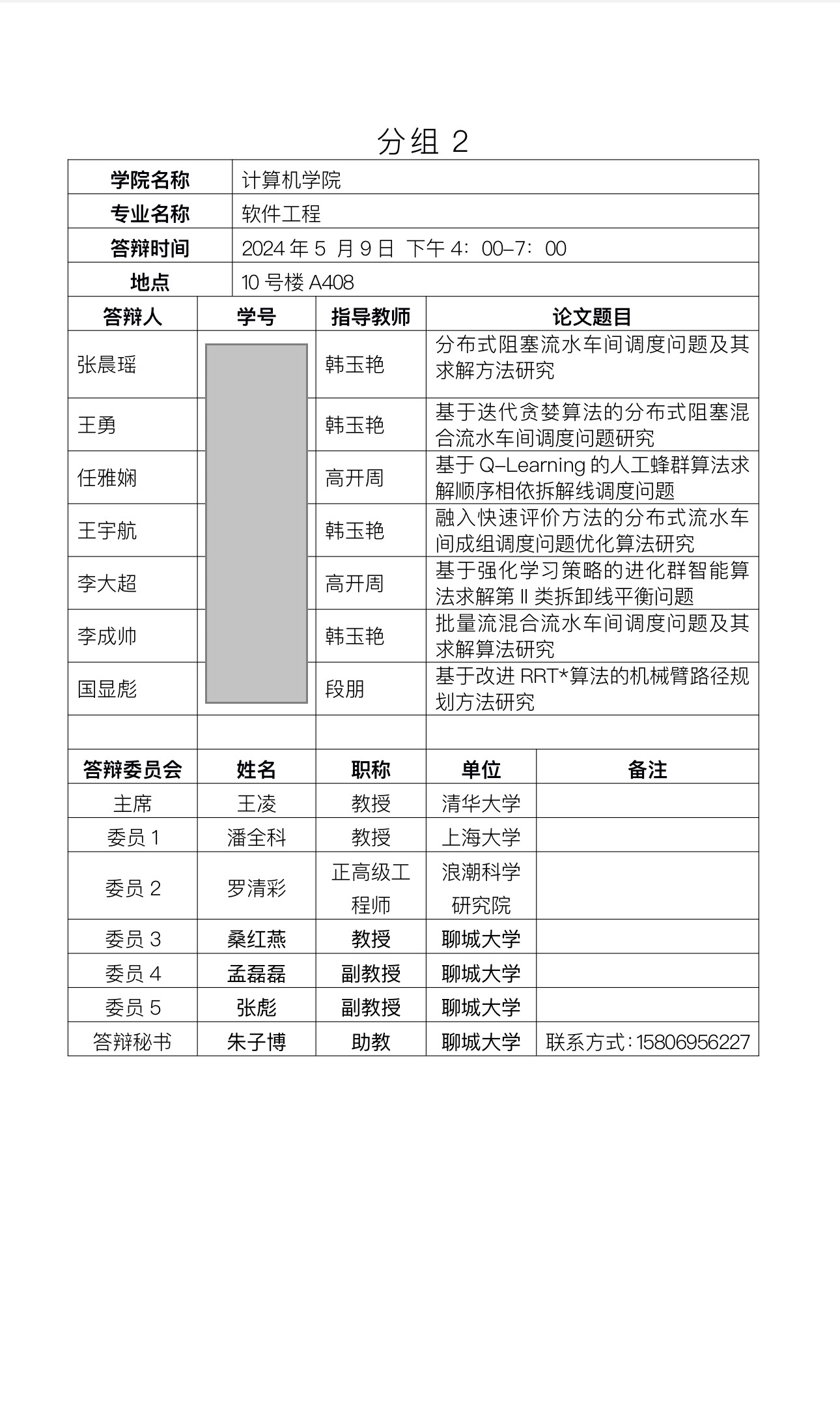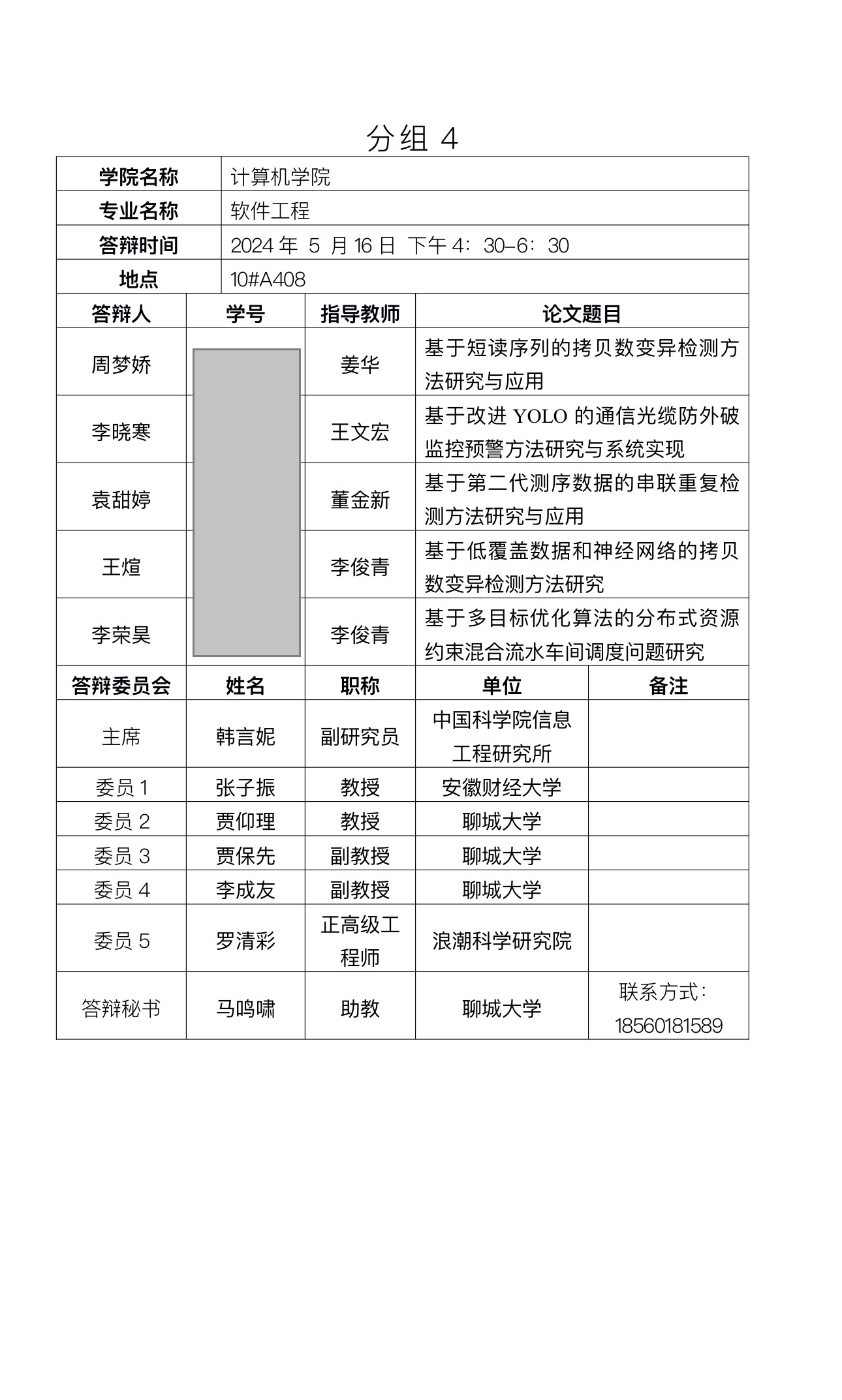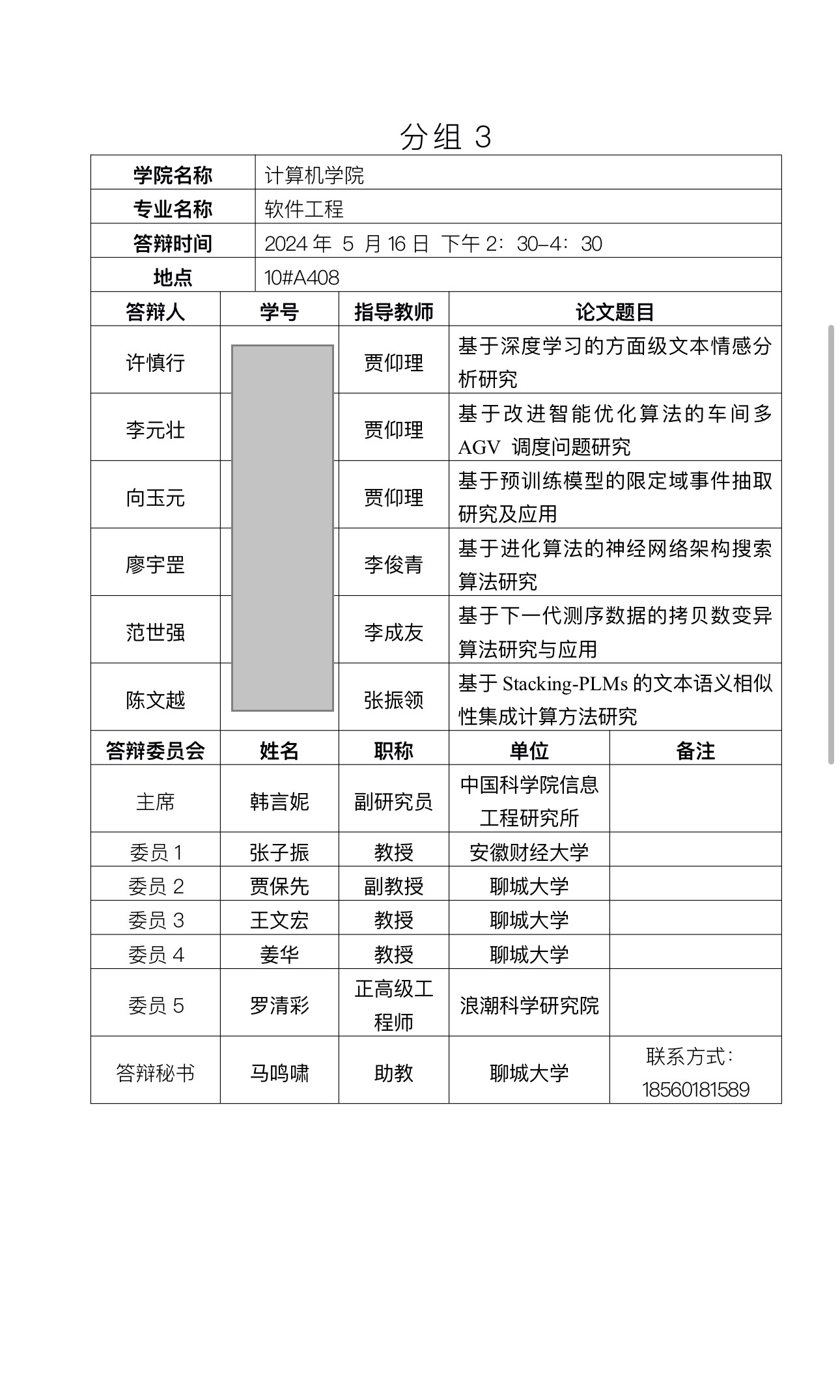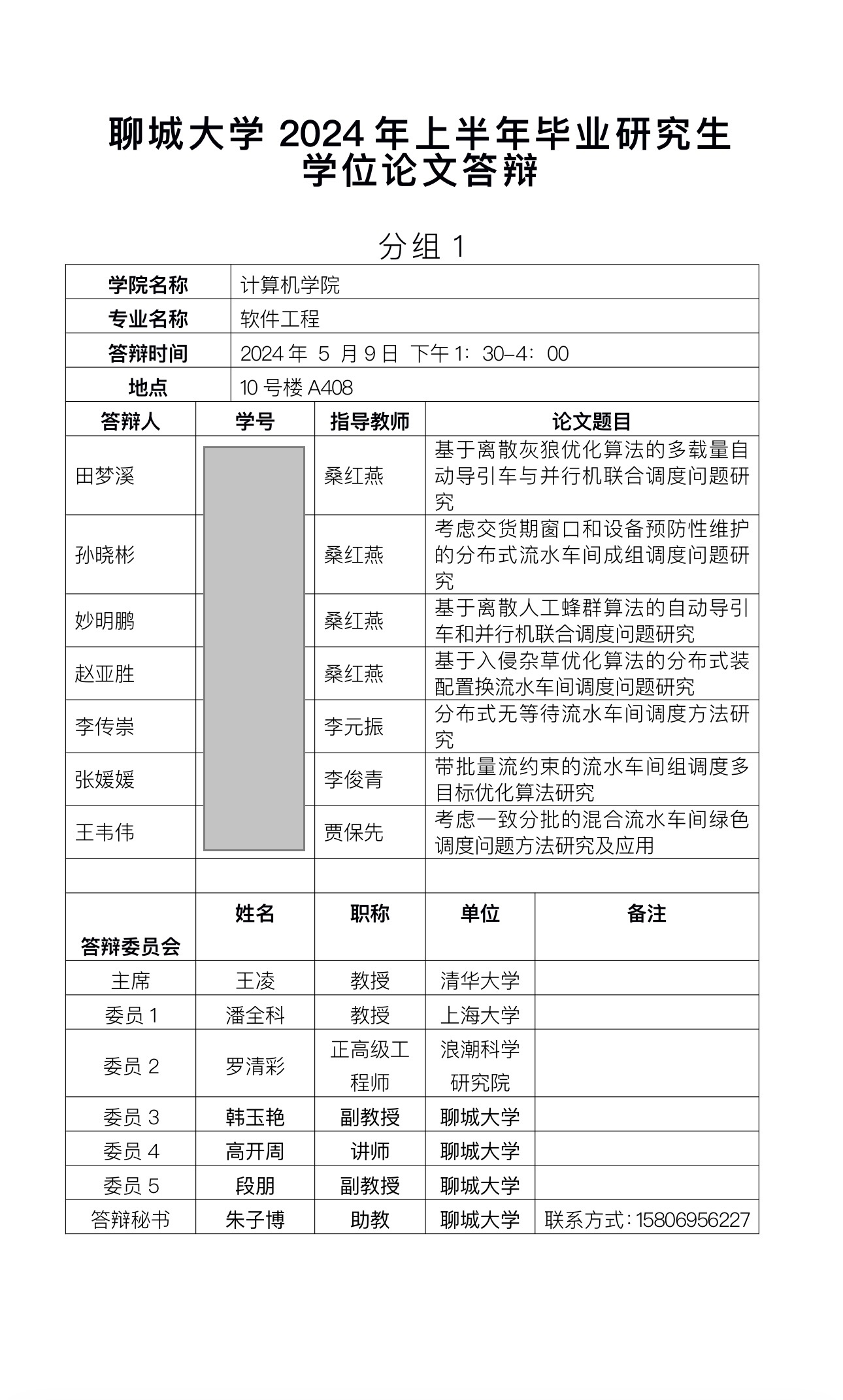 聊城大学2024年上半年毕业研究生 学位论文答辩