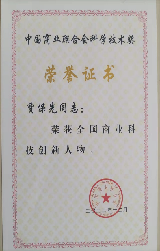 明发体育团队完成的一项成果获全国商业科技进步奖三等奖,团队成员贾保先荣获中国商业联合会“全国商业科技创新人物”荣誉称号。
